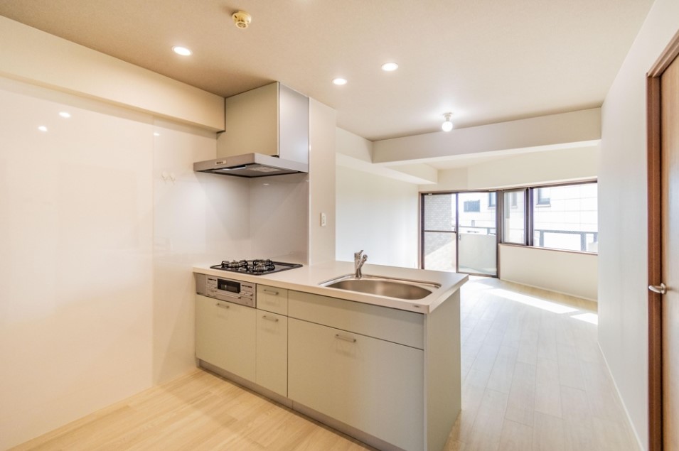 - トイレ専用/温水洗浄便座/システムキッチン/対面式キッチン/3口コンロ/グリル/収納スペース/全居室収納/クローゼット/洗濯機置場/室内洗濯機置場/フローリング/エレベーター/宅配BOX/日当たり良好/眺望良好/通風良好