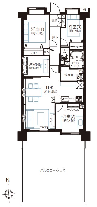 洋室5.5 洋室4.4 洋室3.9 洋室3.4 LDK14.5