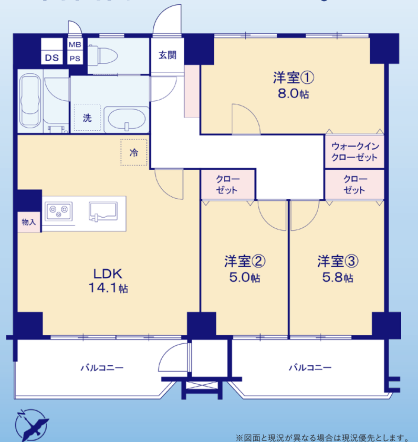 - 洋室8.0帖 洋室5.0帖 洋室5.8帖 リビング14.1帖