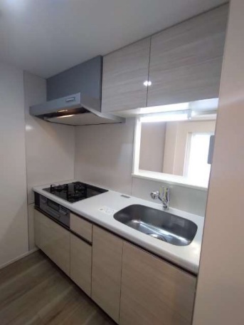 - 浴室乾燥機/洗面台/三面鏡/トイレ専用/温水洗浄便座/対面式キッチン/3口コンロ/グリル/浄水器/クローゼット/室内洗濯機置場/フローリング/全居室フローリング/クッションフロア/宅配BOX/オートロック/モニター付インターホン/日当たり良好
