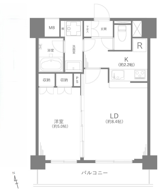 - 洋室5帖 LD8.4帖 キッチン2.2帖
