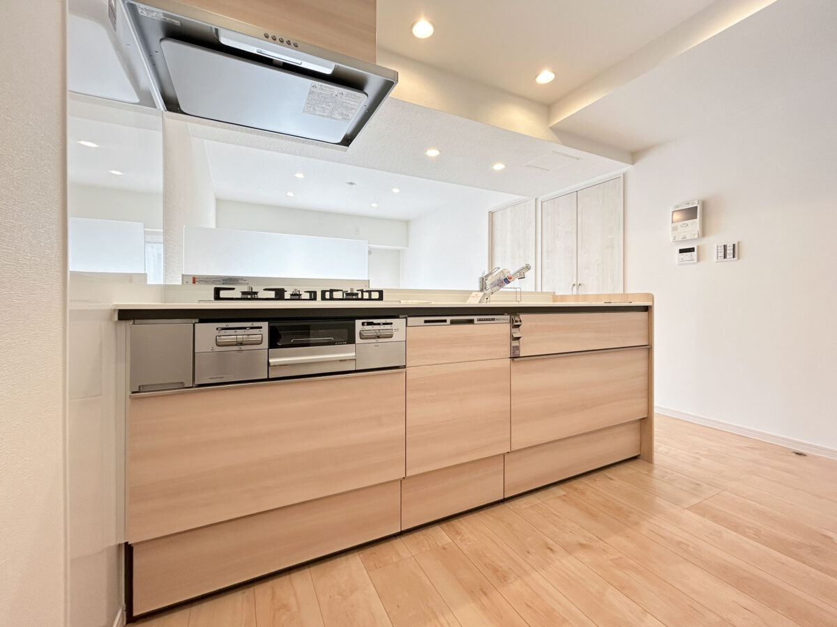 - 追焚機能/浴室乾燥機/洗面台/三面鏡/トイレ専用/温水洗浄便座/対面式キッチン/3口コンロ/食器洗浄乾燥機/収納スペース/トランクルーム/クローゼット/照明器具/洗濯機置場/室内洗濯機置場/フローリング/エレベーター/モニター付オートロック/日当たり良好/通風良好/角部屋/外観タイル張り
