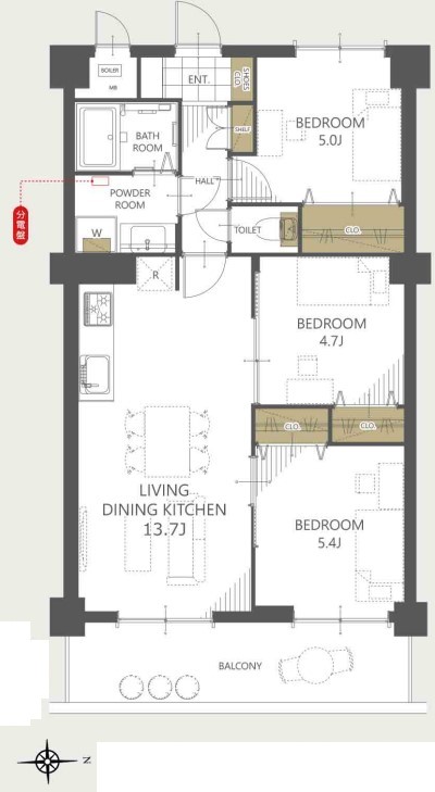 - 洋室5.0 洋室4.7 洋室5.4 LDK13.7