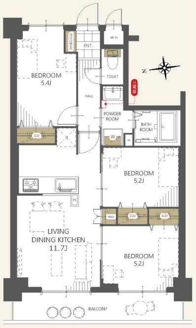 - 洋室5.4 洋室5.2 洋室5.2 LDK11.7
