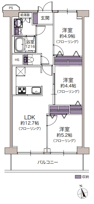 3LDK(S含む)| 61.60㎡