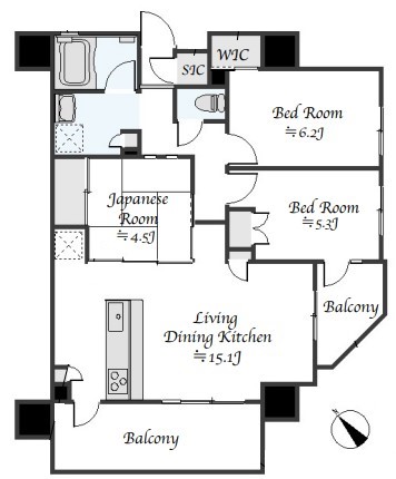 ファミリーにおすすめの3LDKマンション! 南西・南東向きの角部屋です♪ 2 面バルコニーで陽当り通風良好! WICやSICをはじめ全居室収納付きです! 和室はお子様のお昼寝やプレイルームとしても便利です♪