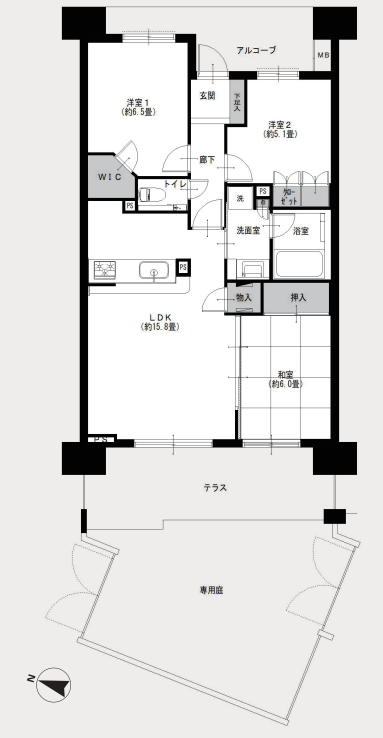 ◇間取:3LDK+WIC(洋室①6.5 洋室②5.1 和室6.0 LDK15.8)◇