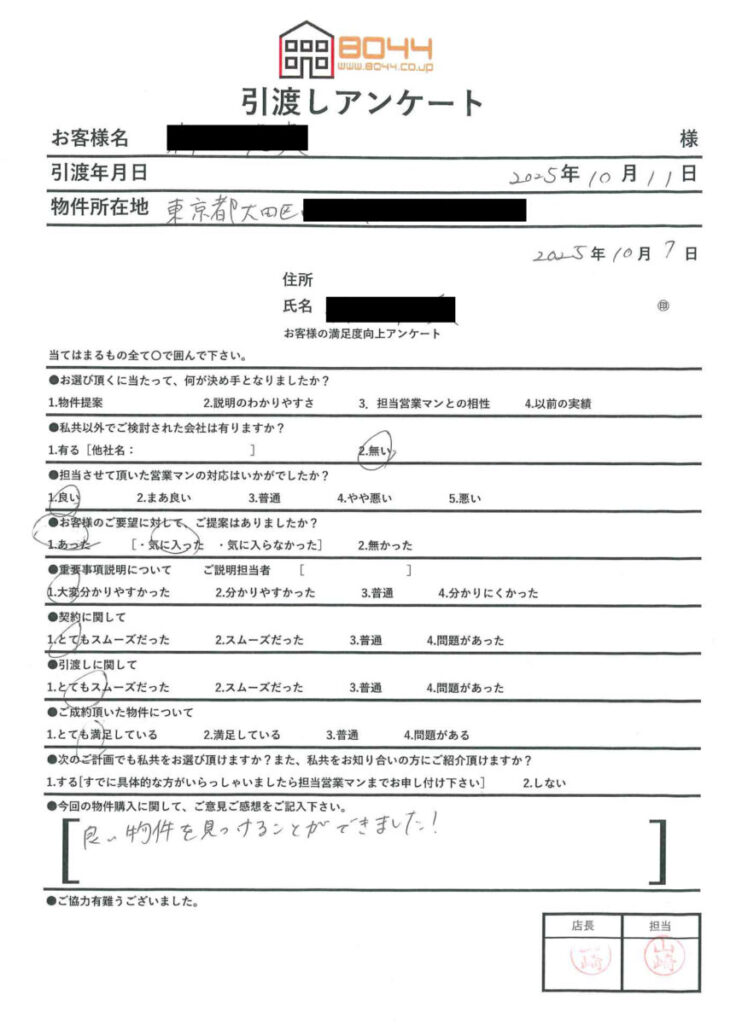 良い物件を見つけることができました!