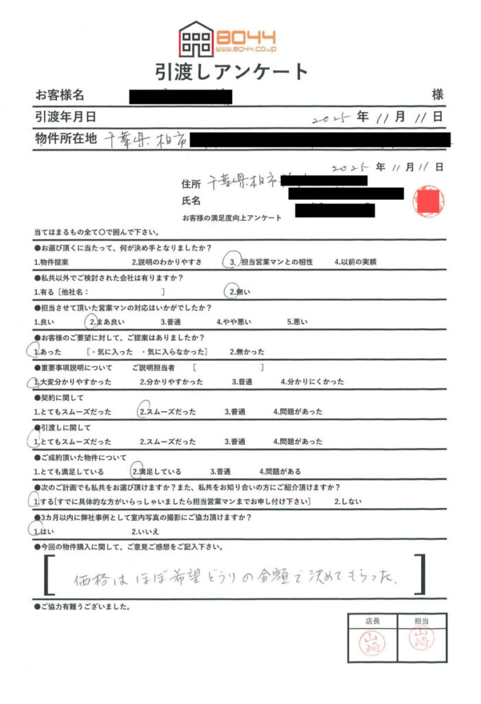 価格はほぼ希望どおりの金額で決めてもらった。