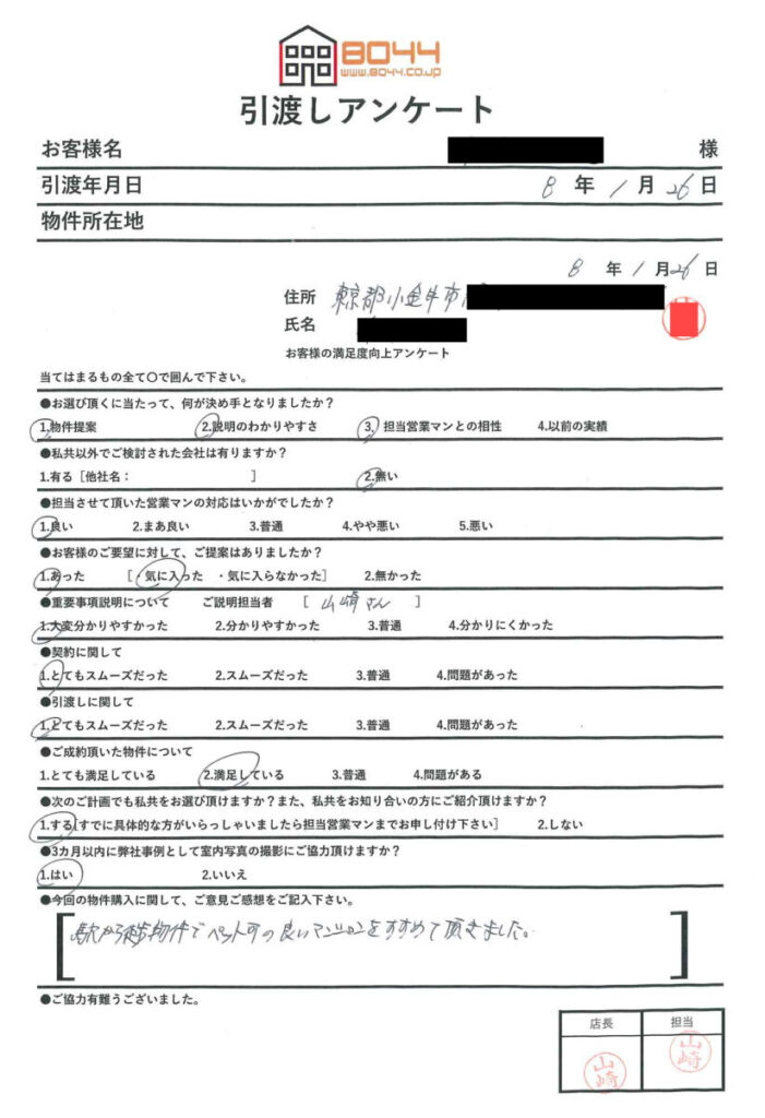 物件条件や価格を分かりやすく迅速に対応頂けました。